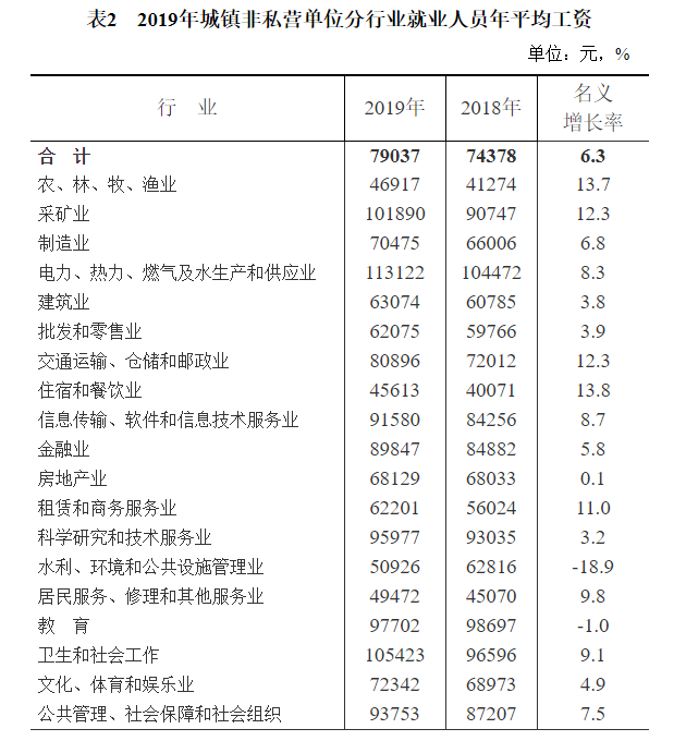 根據(jù)國(guó)家統(tǒng)計(jì)局制定的《企業(yè)一套表統(tǒng)計(jì)調(diào)查制度》和《勞動(dòng)工資統(tǒng)計(jì)調(diào)查制度》,對(duì)城鎮(zhèn)非私營(yíng)單位工資統(tǒng)計(jì)采用全面調(diào)查的方法。 4.行業(yè)分類標(biāo)準(zhǔn) 工資統(tǒng)計(jì)的行業(yè)分類標(biāo)準(zhǔn)按照《國(guó)民經(jīng)濟(jì)行業(yè)分類》(GB/T4754-2017)執(zhí)行。