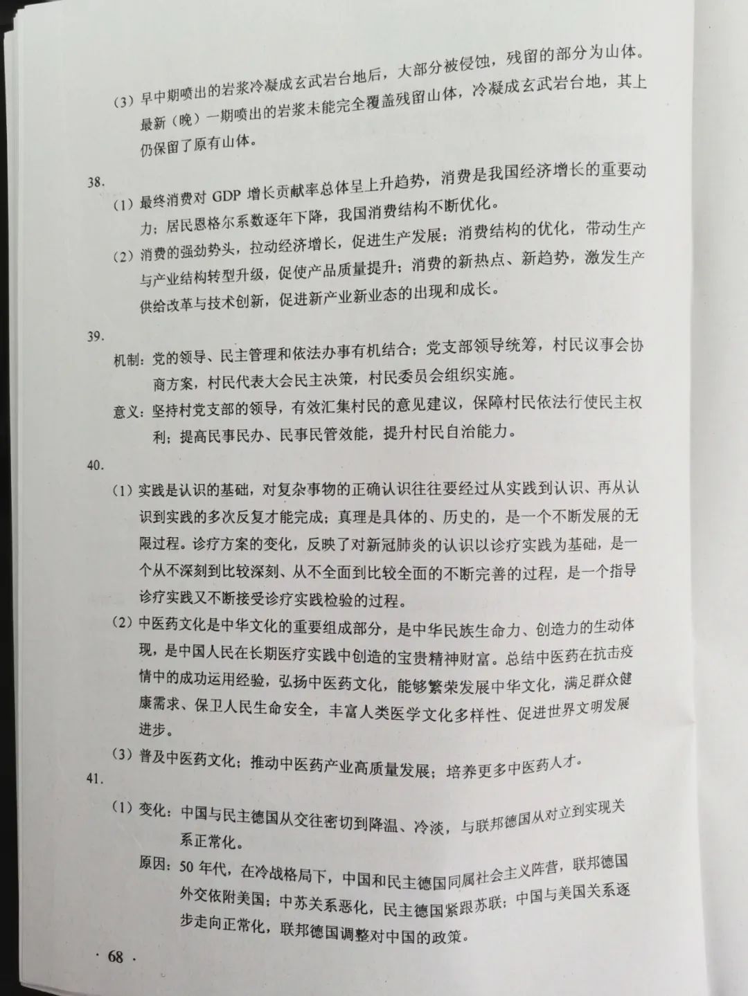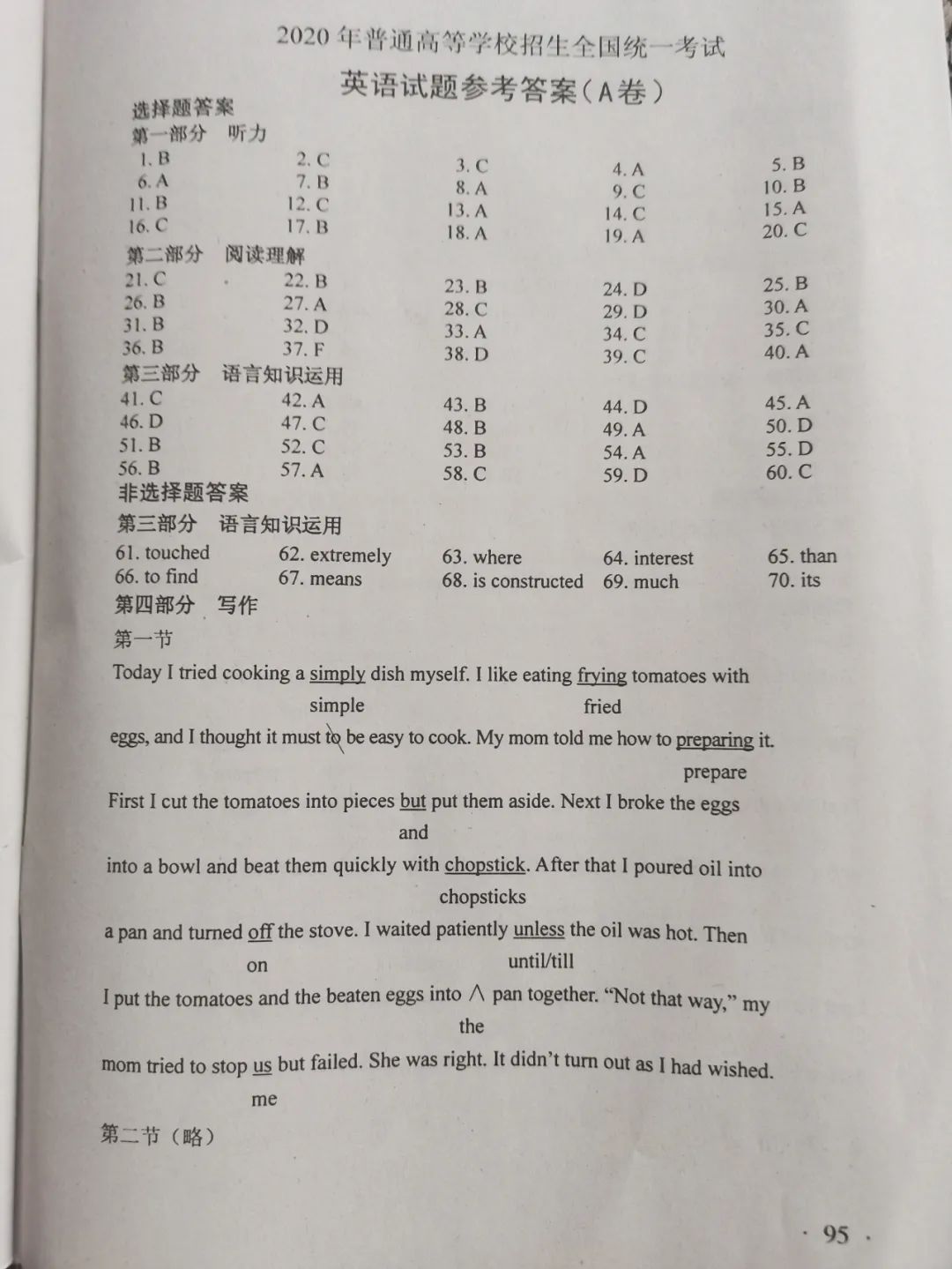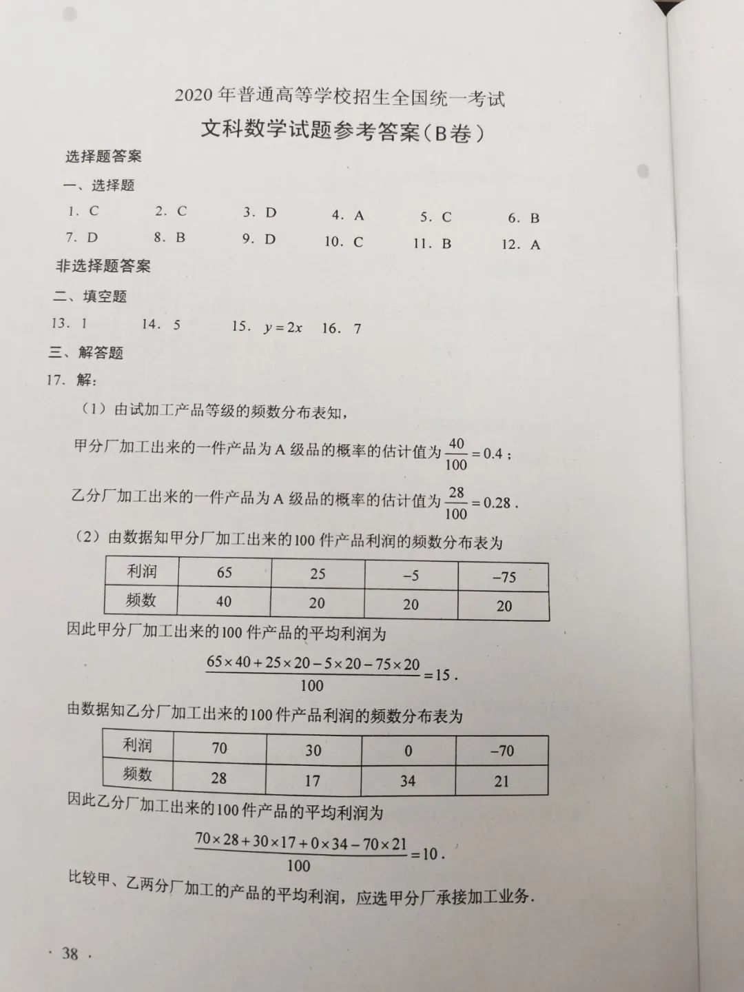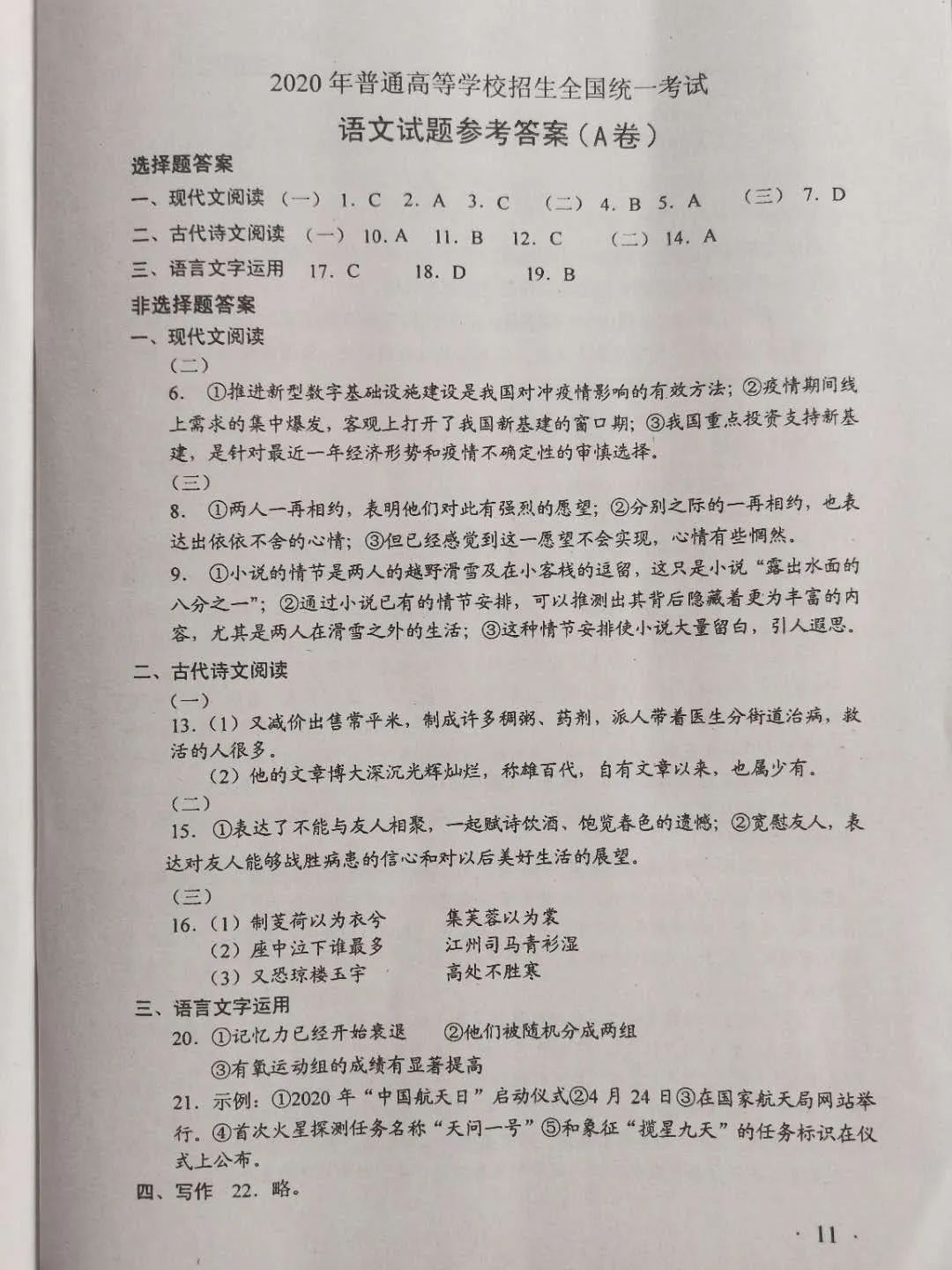 2020年高考試卷參考答案 全國I卷適用地區(qū):