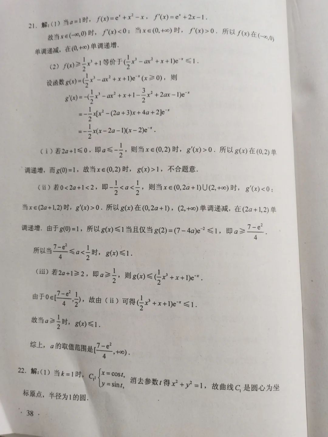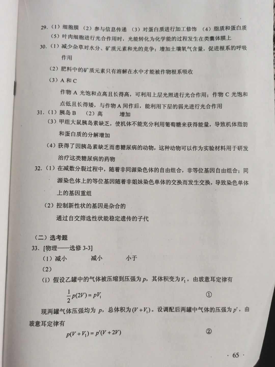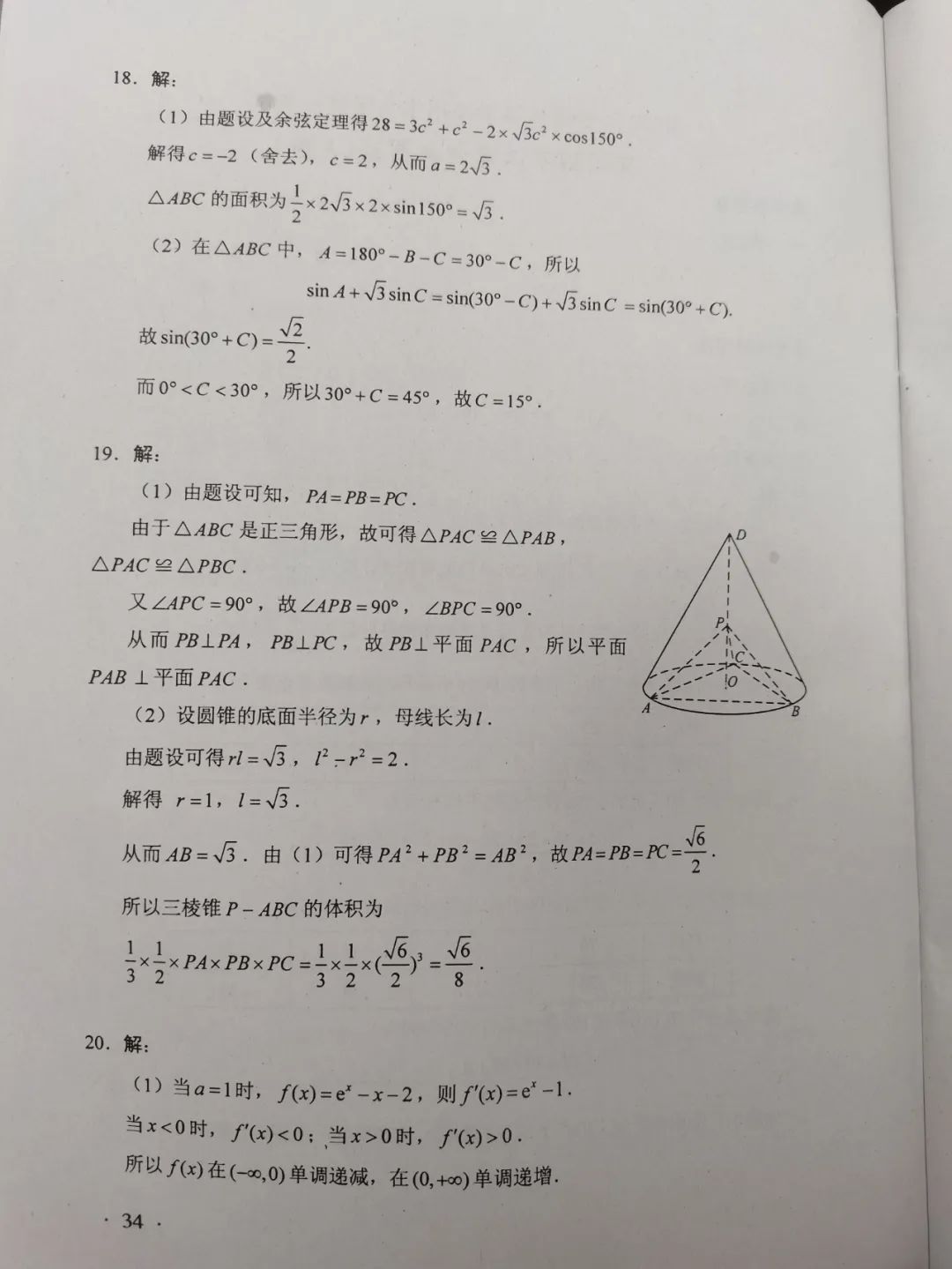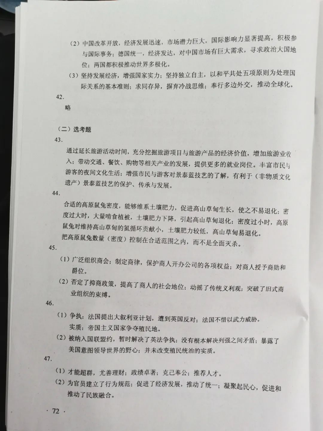 2020年高考試卷參考答案 全國I卷適用地區(qū):