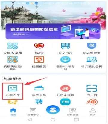 2、手機下載皖事通APP,點擊熱點服務辦事大廳