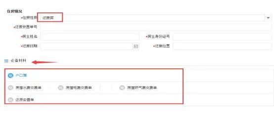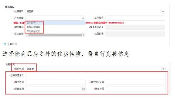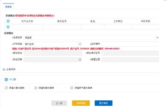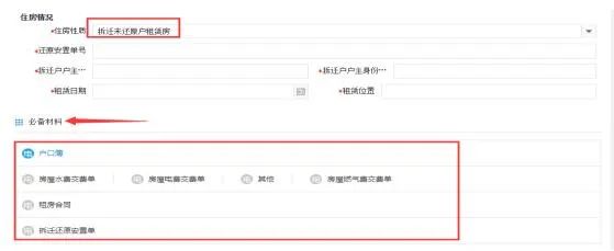 戶口簿會根據(jù)申請人信息自動帶出,相關必要條件需上傳高清圖片,不同住房性質(zhì),必備材料需求也不同。