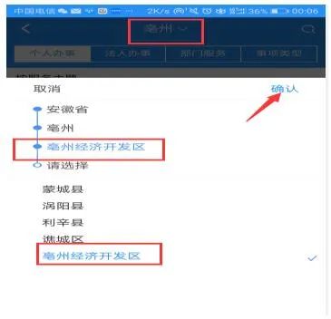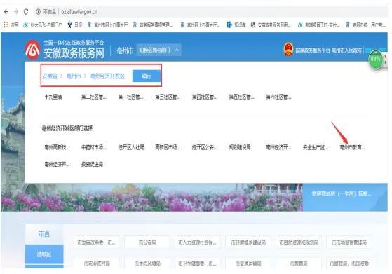 3、選擇亳州市—亳州經(jīng)濟開發(fā)區(qū)---點擊確認進入報名選擇頁面