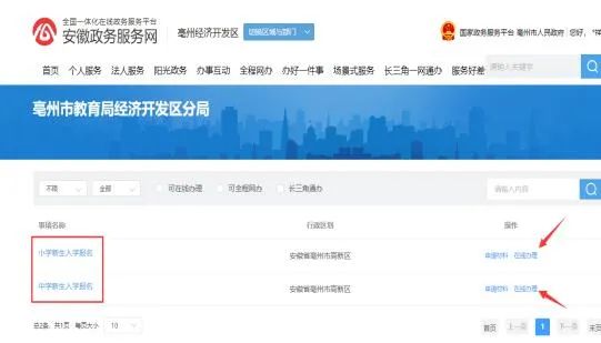 4、進入亳州市教育局經(jīng)濟開發(fā)區(qū)分局頁面(本次操作以亳州高新區(qū)為例),根據(jù)自己報名需求選擇小學新生入學報名或中學新生入學報名進入報名頁面