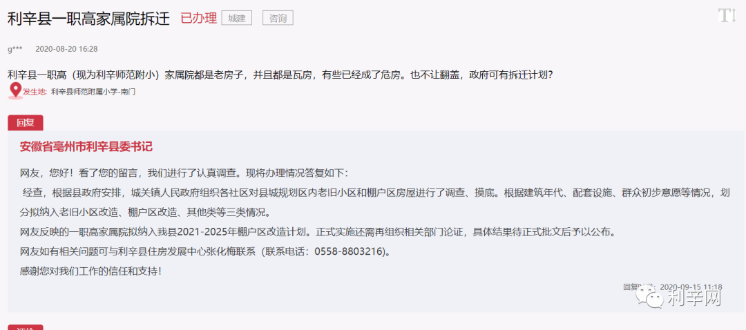 網(wǎng)友如有相關(guān)問(wèn)題可與利辛縣住房發(fā)展中心張化梅聯(lián)系(聯(lián)系電話:0558-8803216)。