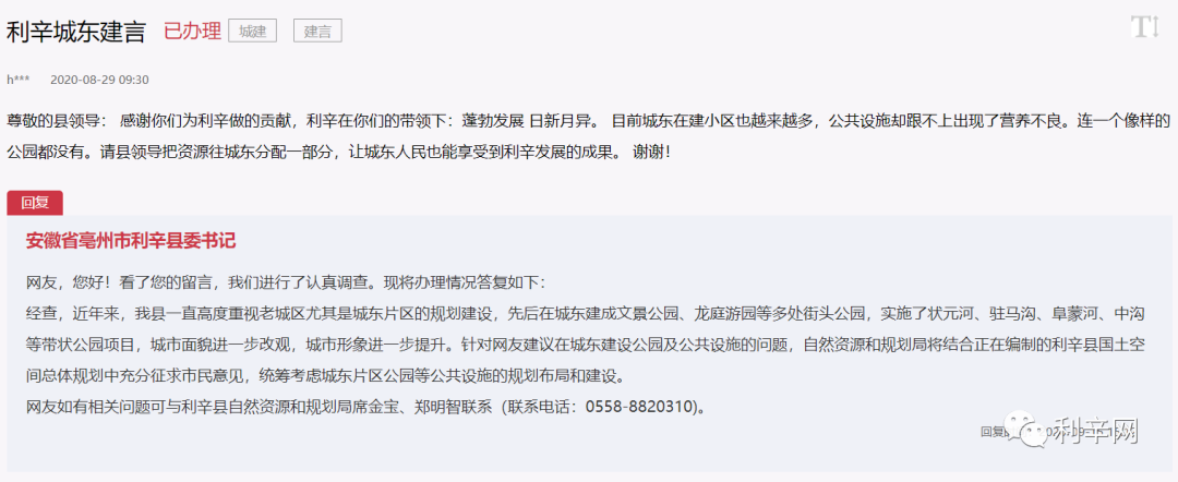 網(wǎng)友如有相關(guān)問(wèn)題可與利辛縣自然資源和規(guī)劃局席金寶、鄭明智聯(lián)系(聯(lián)系電話:0558-8820310)。