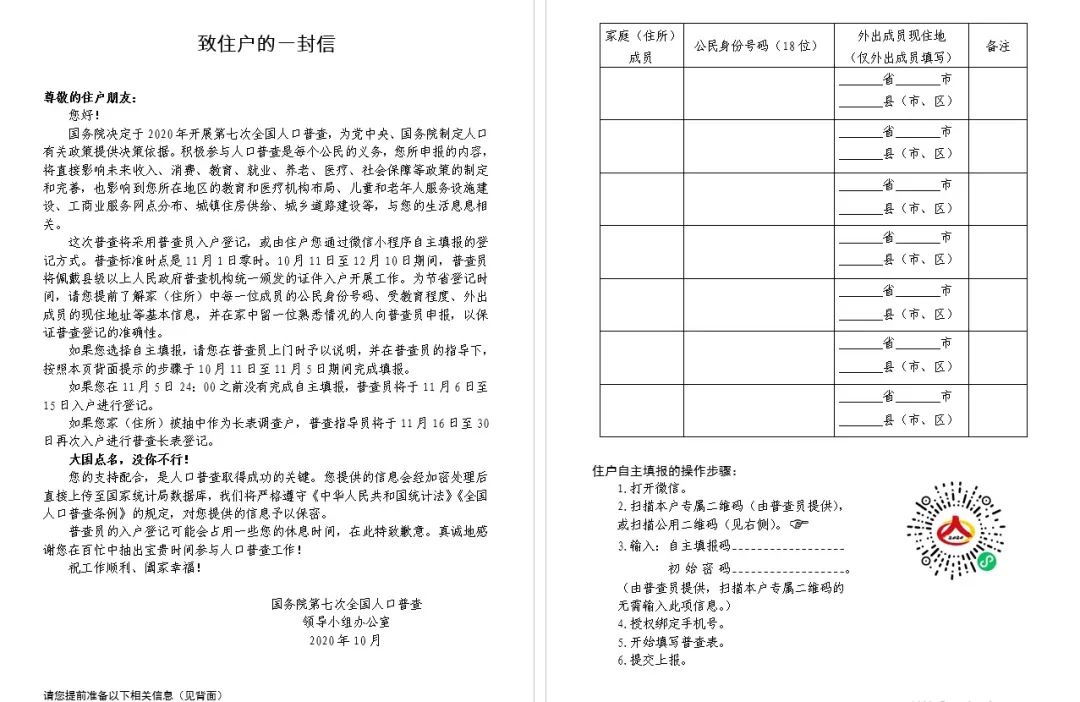 請準(zhǔn)備好戶口本、身份證,整理好家庭成員基本情況,歡迎普查員來家。因?yàn)?,每一個(gè)你都很重要!